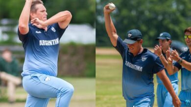 Image Source : ICC Argentinian bowler Hernan Fennel Argentina vs Cayman Islands: Taking a hat-trick in T20 cricket has always…