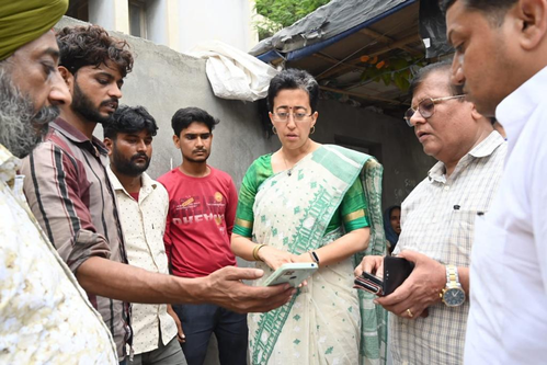 New Delhi, July 25 : Delhi Minister Atishi on Tuesday visited the Punjabi Bagh’s Arihant Nagar where two members of the caretaker’s family lost their lives.