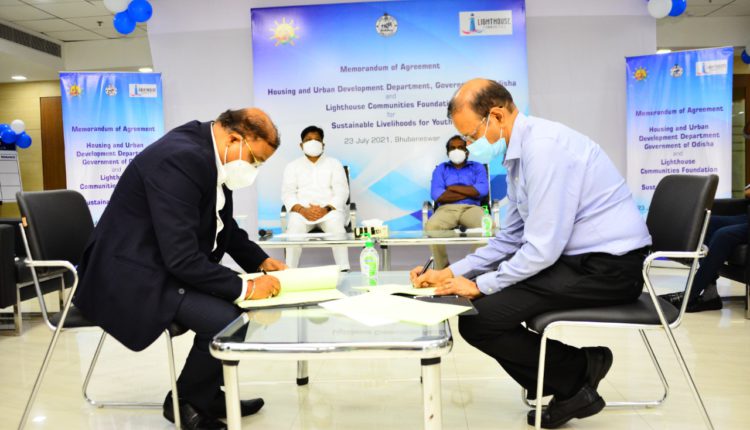 Bhubaneswar: The Housing and Urban Development Department, Government of Odisha today signed a Memorandum of Association (MoA) with Pune-based Lighthouse Communities Foundation (LCF) for providing sustainable livelihoods to youth in Odisha’s cities and towns. This partnership program has been approved by the Chief Minister of Odisha and the MoA was signed today in the presence of Pratap Jena, Minister for Housing and Urban Development Department.