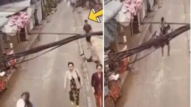 Dramatic video: Child saved by thread from being hit by bike