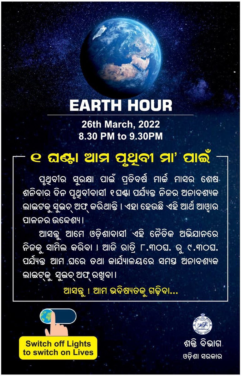 Odisha Energy Department Urges All To Observe Earth Hour