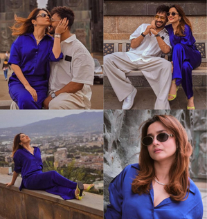 Taking to Instagram, Ankita, who has 5.3 million followers, shared some precious moments from their trip, showcasing the stunning backdrop of Georgia. In one delightful snap, Ankita looks radiant in a blue satin co-ord set while sitting on the lap of her husband Vicky Jain, who looks dapper in a crisp white shirt and matching trousers.