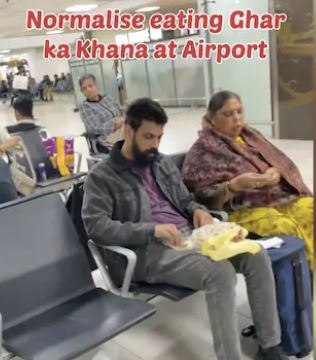 Twitter user Madhur Singh and his mother were at an airport ready to board their flight to Goa. But before they boarded, the duo sat in the waiting area of the airport and munched on homemade aloo paratha and nimbu achaar. Posting a video of eating at the airport with his mother, Singh tweeted, “Travelling in flights [has] become easier for middle class but the societal pressure of buying Rs 400 worth dosa and Rs 100 worth water bottle is still too damn high.”