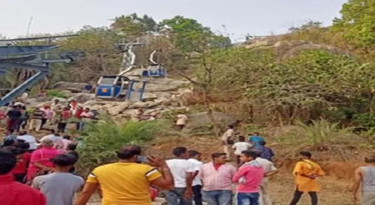 Deoghar, April 11: Two persons included a woman died, while ten others were still trapped after a ropeway accident on the Trikut Hills of Jharkhand’s Deoghar district, officials said on Monday, as Army, NDRF and ITBP personnel continued rescue operation.