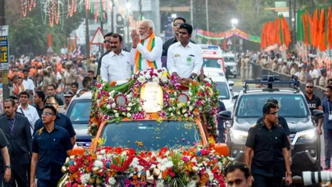 Thousands line streets as PM Modi holds roadshow in Kerala’s Palakkad