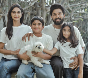 The photographs show Allu Arjun, Sneha Reddy, their son Allu Ayaan, daughter Allu Arha, and their furry friend. All of them can be seen twinning in simple white t-shirts. The star’s wife captioned the post, “Blessed with the best”, along with a family and beating heart emoji.