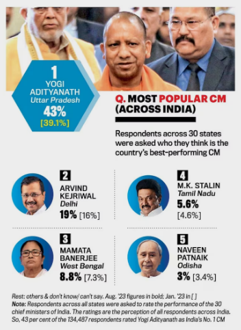 In contrast, Delhi CM Arvind Kejriwal, despite his nationwide popularity, was rated as the eighth most popular CM in his home state. Tamil Nadu CM MK Stalin and West Bengal CM Mamata Banerjee occupied the ninth and tenth positions, respectively, in the list of popular Chief Ministers in their respective home states.