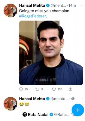 Mumbai, Sep 16: Acclaimed filmmaker Hansal Mehta on Friday morning made a boo-boo by putting actor Arbaaz Khan’s picture on a post he shared about Roger Federer, a 20-time Grand Slam singles champion.