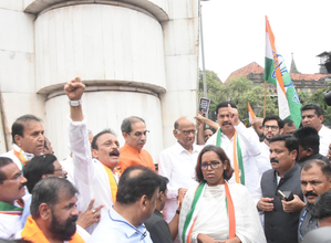 Mumbai, Sep 1: The Maha Vikas Aghadi on Sunday held a ‘Jodo Maro’ protest against the collapse of a statue…