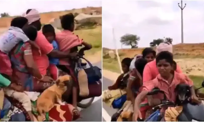 Viral Video: Risky Ride That! Men On A Bike With Wife, 5 Kids, 2 Dogs And 2 Chickens. Netizens Speechless