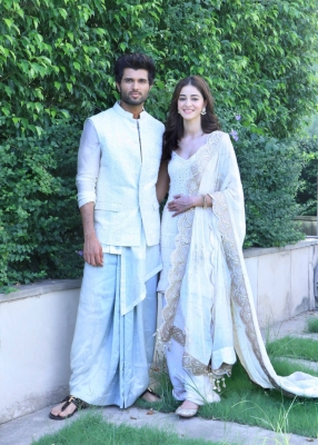 Hyderabad, Aug 17: Ahead of the release of their upcoming film ‘Liger’, actress Ananya Pandey attended a pooja and sought blessings from her co-star Vijay Deverakonda’s mother at his residence here.